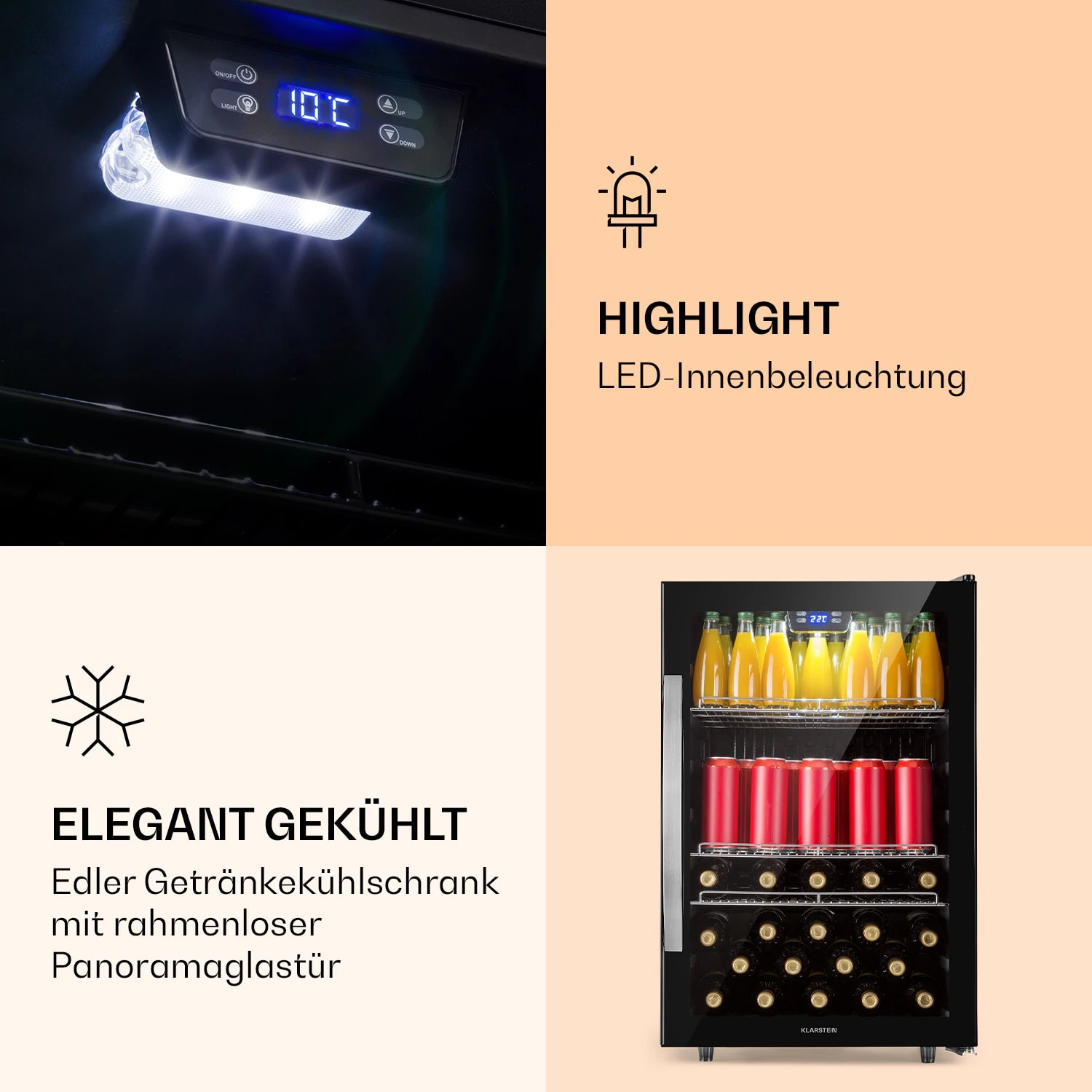 Beersafe 5XL Kühlschrank 148 Liter 3 Böden Panoramaglastür Edelstahl