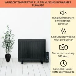 Wallkyrie Wandheizgerät 1000W/2000W 10 – 49 °C Thermostat Schwarz