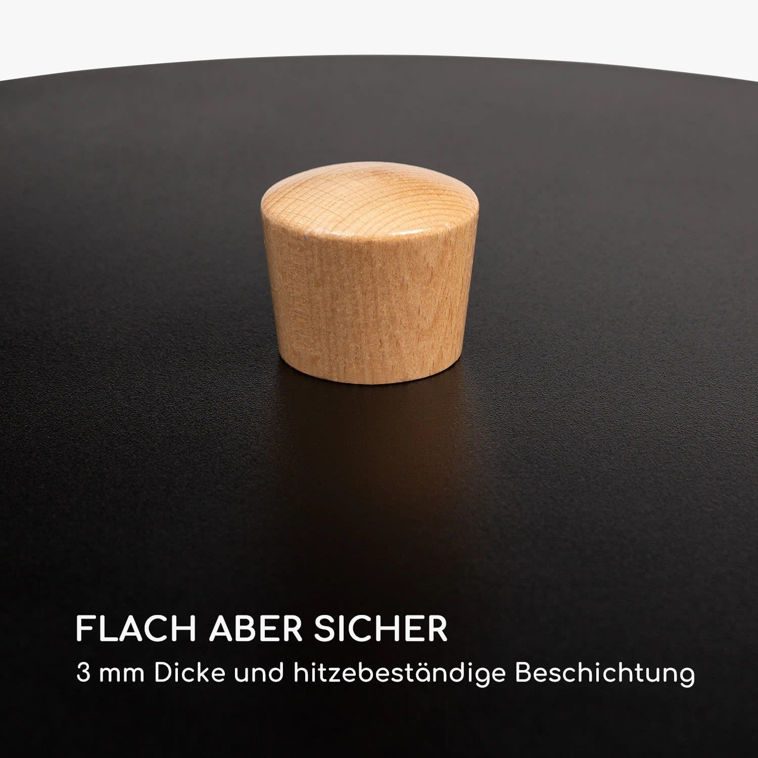 Der hochwertige blumfeldt Firebowl Savage Lid perfektioniert deine Feuerschale, denn er deckt sie perfekt ab. Schließe die Feuerstelle, wenn du sie nicht benutzt, um sie noch stilvoller aussehen zu lassen. Der Feuerschalen-Deckel besticht durch sein edles Design und schafft mit seiner Oberfläche in schlichtem Schwarz und dem Griff aus schönem Holz einen modernen Kontrast. Zudem ermöglicht der Holzgriff dir eine sehr angenehme Handhabung, da sich das Holz nur sehr langsam erhitzt.