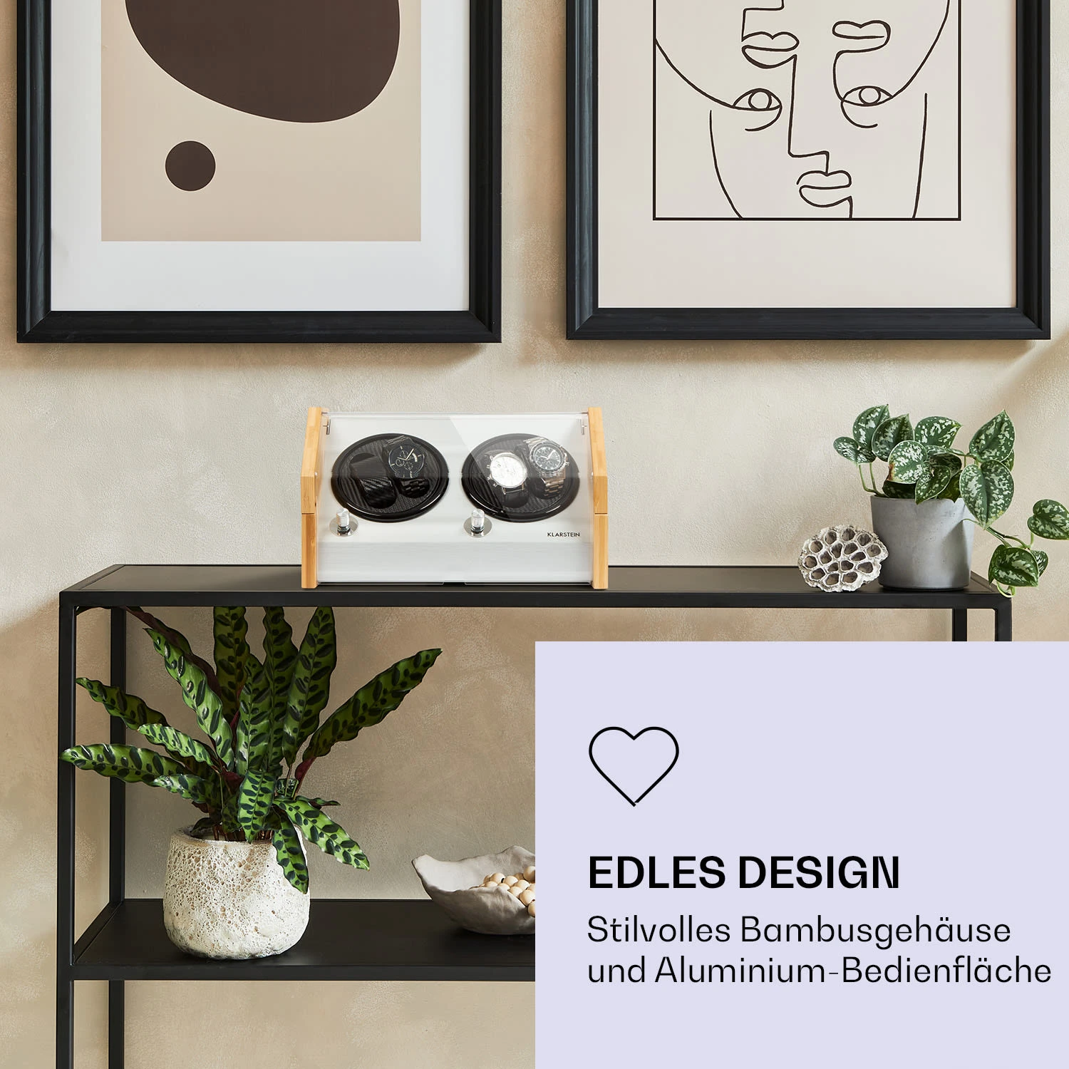 Garonne 4 Uhrenbeweger, 2 Drehteller, 4 Uhren, 3 Geschwindigkeiten, 4 Modi, Bambus