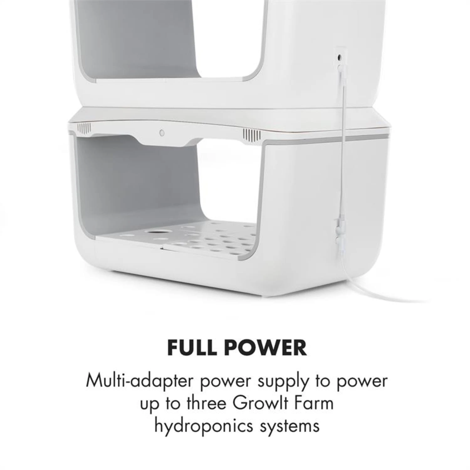 Die doppelte Ernte: Mit dem Klarstein GrowIt Connection Set Verbindungs-Komplettset kommt zusammen, was zusammen gehört. Unkompliziert ermöglicht das Verbindungs-Set das übereinander Stapeln von zwei GrowIt Farm Indoor Garden Systemen. So erreicht dein Heimgarten im Handumdrehen die doppelte Größe. Für die Stromversorgung ohne Kabelsalat ist direkt ein 40 cm langes Verbindungskabel enthalten, über das das zweite Smart Indoor Garden System in Reihenschaltung mit Strom versorgt werden kann. Auch das erforderliche Powernetzteil mit 24 V und 6,25 A zur gleichzeitigen Versorgung von bis zu drei GrowIt Farm Systemen ist im Set direkt dabei.