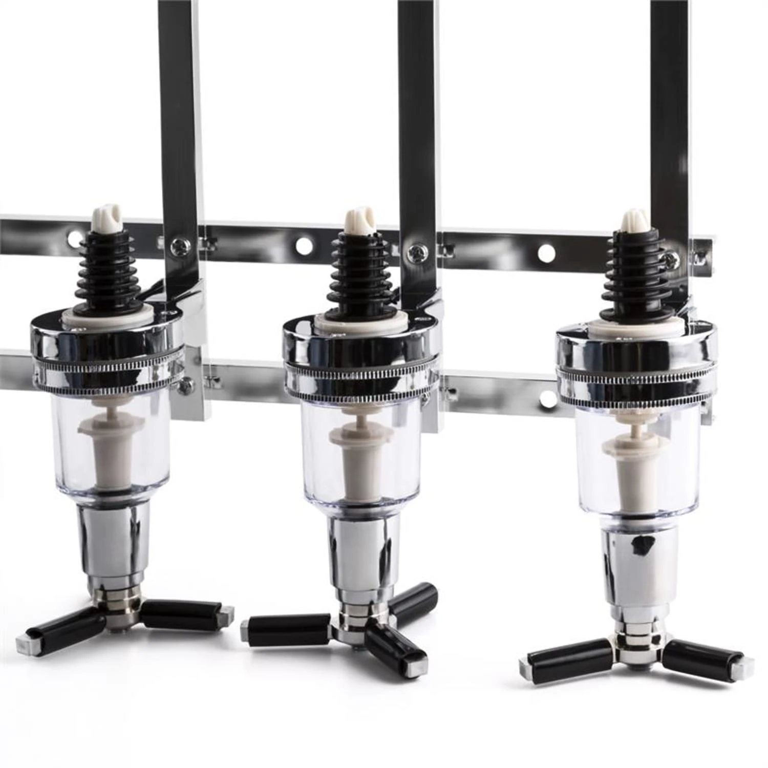 Dabei überzeugt der Dosierer vor allem durch seine Funktionalität: vier unterschiedlich große Getränkeflaschen – von 0,7 bis 1 Liter – finden im Hazlehov Sixtett Platz und werden so standesgemäß in Szene gesetzt. So lassen sich beispielsweise Shot Gläser, hochpräzise und innerhalb von Sekunden mit 0,4 cl Flüssigkeit befüllen. Abgerundet wird der Funktionsumfang durch den Schnellwechselmechanismus der vier Dosierer.