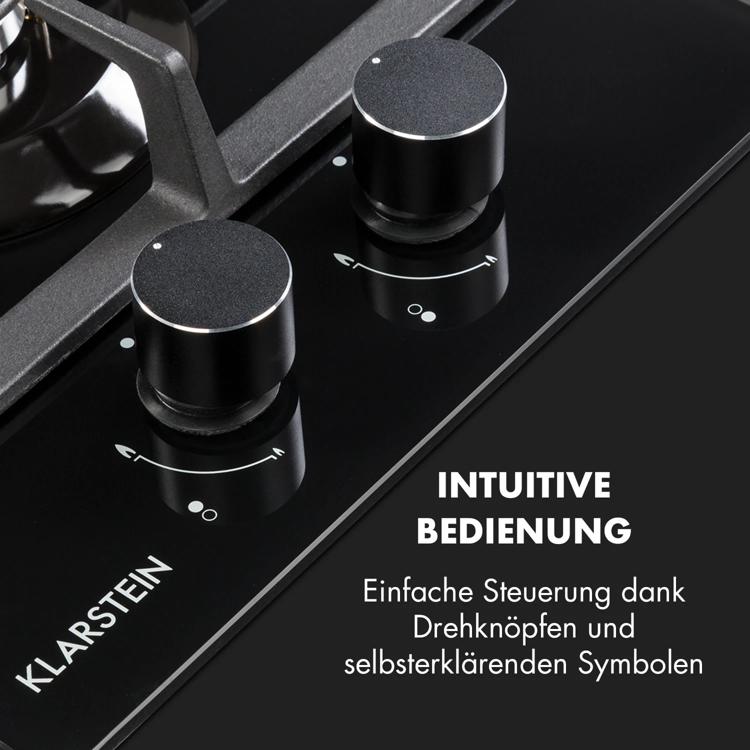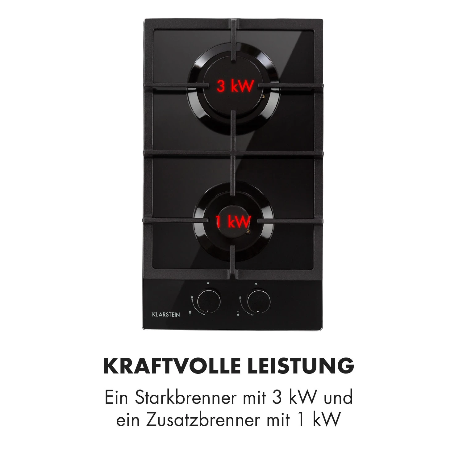 Ignito Domino Gaskochfeld 2-flammig Sabaf-Brenner Glaskeramik Schwarz
