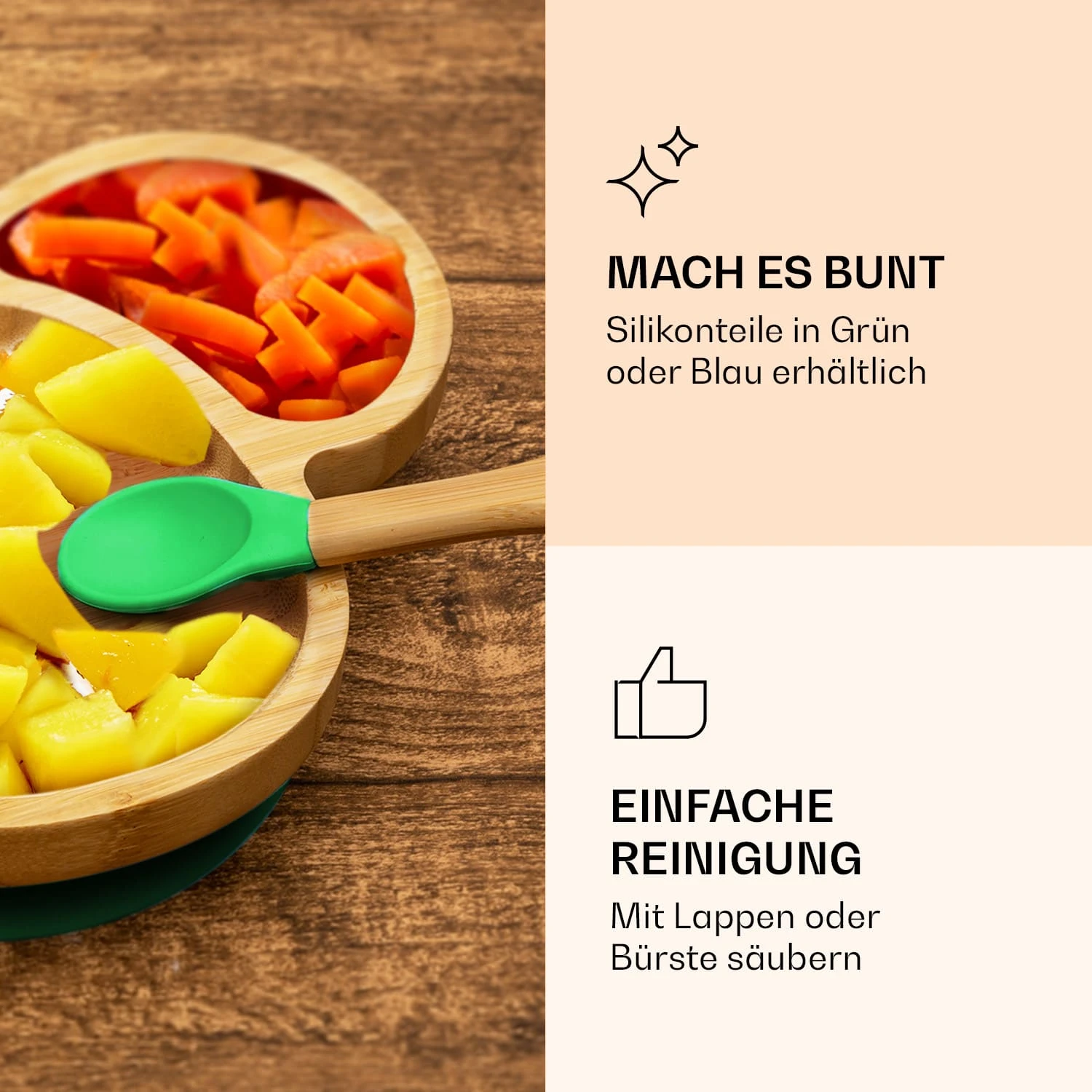 - Geschirrset für Kleinkinder mit Bambusteller und Löffel