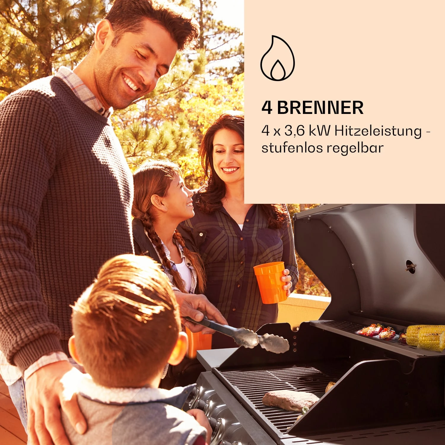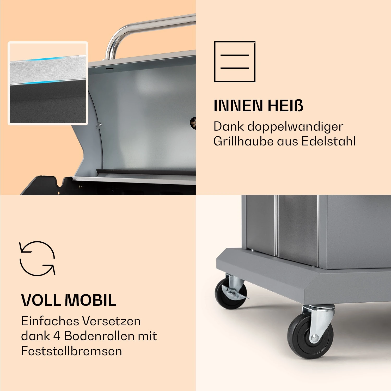 Lucifer 4 Gasgrill 4 X 3,6 KW Brenner 69x45cm Grill Edelstahl Mobil