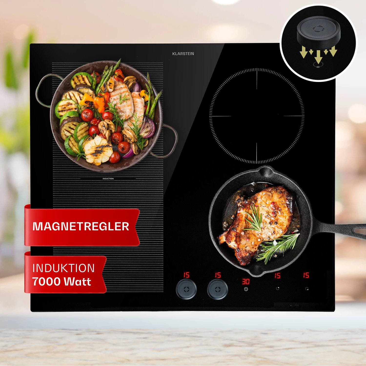 - abnehmbarer Magnetdrehregler – für einfache Reinigung im Geschirrspüler