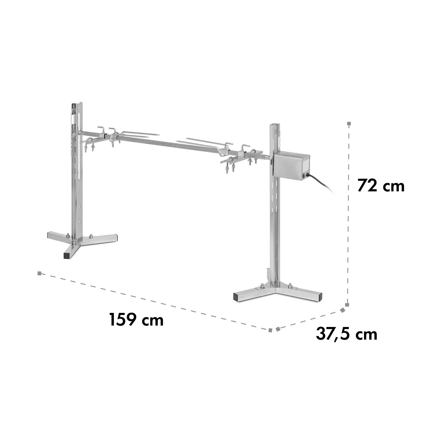 Mit dem resistenten und leicht zu reinigenden Drehspieß aus Edelstahl können saftige Spanferkel, schmackhafte Hähnchen und leckere Braten bis zur Perfektion zubereitet werden. Dank einer höhenverstellbaren Vorrichtung mit 5 Stufen lässt sich jederzeit die Höhe des Grillguts und somit auch das gewünschte Garergebnis punktgenau bestimmen. Angetrieben wird der Edelstahl-Spieß des Spanferkelgrills von einem mitgelieferten Motor mit 12 Watt Leistung: Durch eine stetige Drehung sorgt er für einen gleichmäßigen Garprozess und perfekt-saftigen Fleischgenuss. Die stabilen, 3-gliedrigen Standbeine aus Edelstahl im neuen Design für noch besseren Halt sorgen dabei zuverlässig für Sicherheit und Standfestigkeit. Zudem ist die Hitzequelle unter dem Grillgut frei wählbar: Ob das Grillfleisch über einer mit Holzkohle gefüllten Grillschale oder einem offenen Feuer im Garten bis zur Perfektion am Drehspieß rotiert, ist hierbei jedem selbst überlassen. Dank seiner einfach verstaubaren Komponenten und sein geringes Gewicht lässt sich der Sauenland Survivor zudem leicht transportieren und an der gewünschten Stelle im Handumdrehen aufstellen. So wird maximale Flexibilität bei unterschiedlichen Grillveranstaltungen gewährleistet.