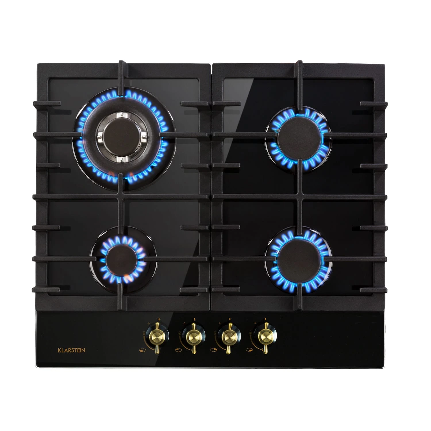Auf dem geräumigen Klarstein Victoria Gasherds befinden sich vier hochwertige Sabaf-Brenner, die mit einer Leistung von jeweils einmal 3,6 kW und 1 kW sowie zweimal 1,75 kW ordentlich einheizen. Dabei ist die Bedienung dank der selbsterklärenden Symbole an den großen Drehknöpfen absolut intuitiv. Die Hitzezufuhr kann während des Kochvorgangs immer wieder direkt angepasst werden. Zusätzliches Feuer zum Entzünden ist nicht nötig: Die Gasflamme wird einfach per SnapJetIgnition entfacht. Die Brenner verteilen die Hitze gleichmäßig in der Mitte und an den Rändern der Töpfe oder Pfannen, alles wird perfekt gegart. Die beiden abnehmbaren Kreuze aus massivem Gusseisen sind für beinahe alle Arten von Kochgeschirr geeignet und sitzen passgenau und kippsicher über den Flammen.
