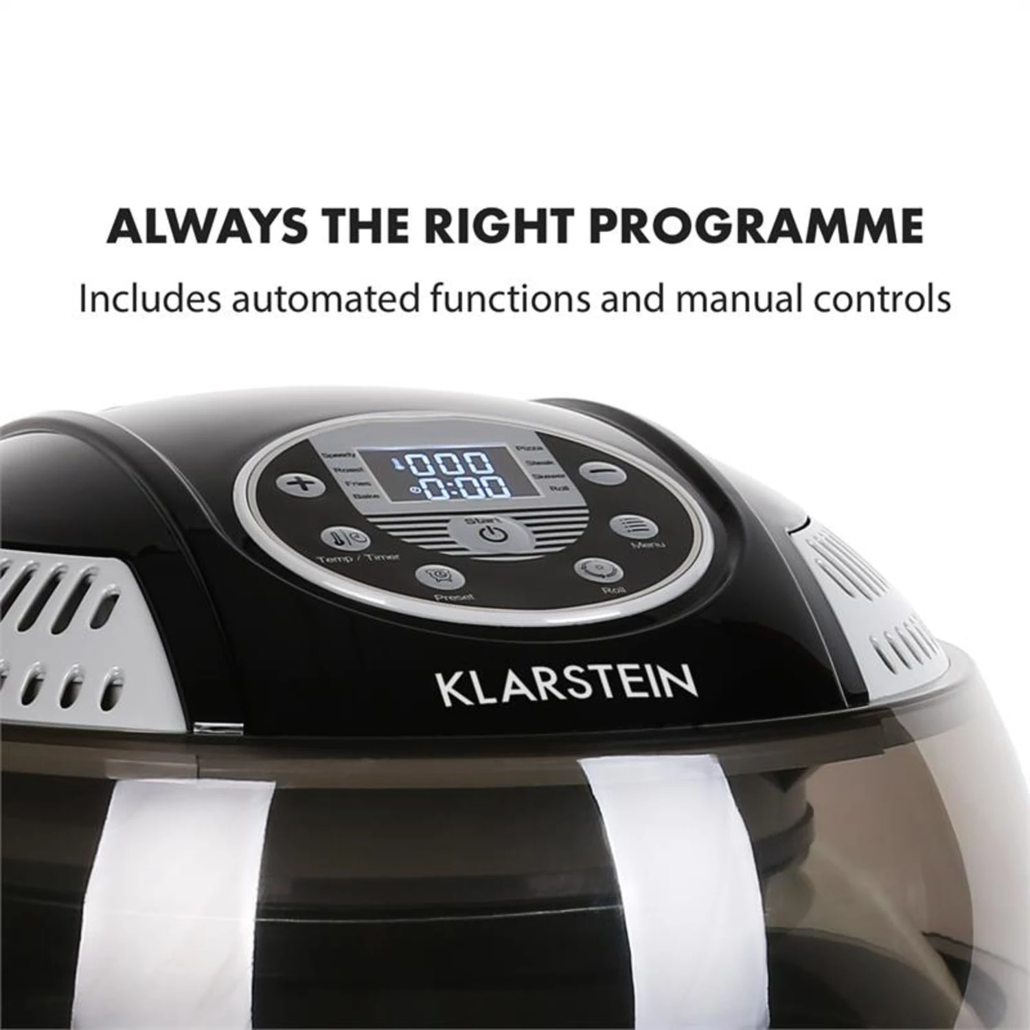 Der Klarstein VitAir Fryer ist eine futuristisch anmutende Heißluftfritteuse, die altbewährte Küchenrituale revolutioniert und herkömmlicheFritteusen, Grills und Backöfen zur Untätigkeit verdammt, denn dieser Küchenmeister vereint alle zu einem Multifunktionsgerät.